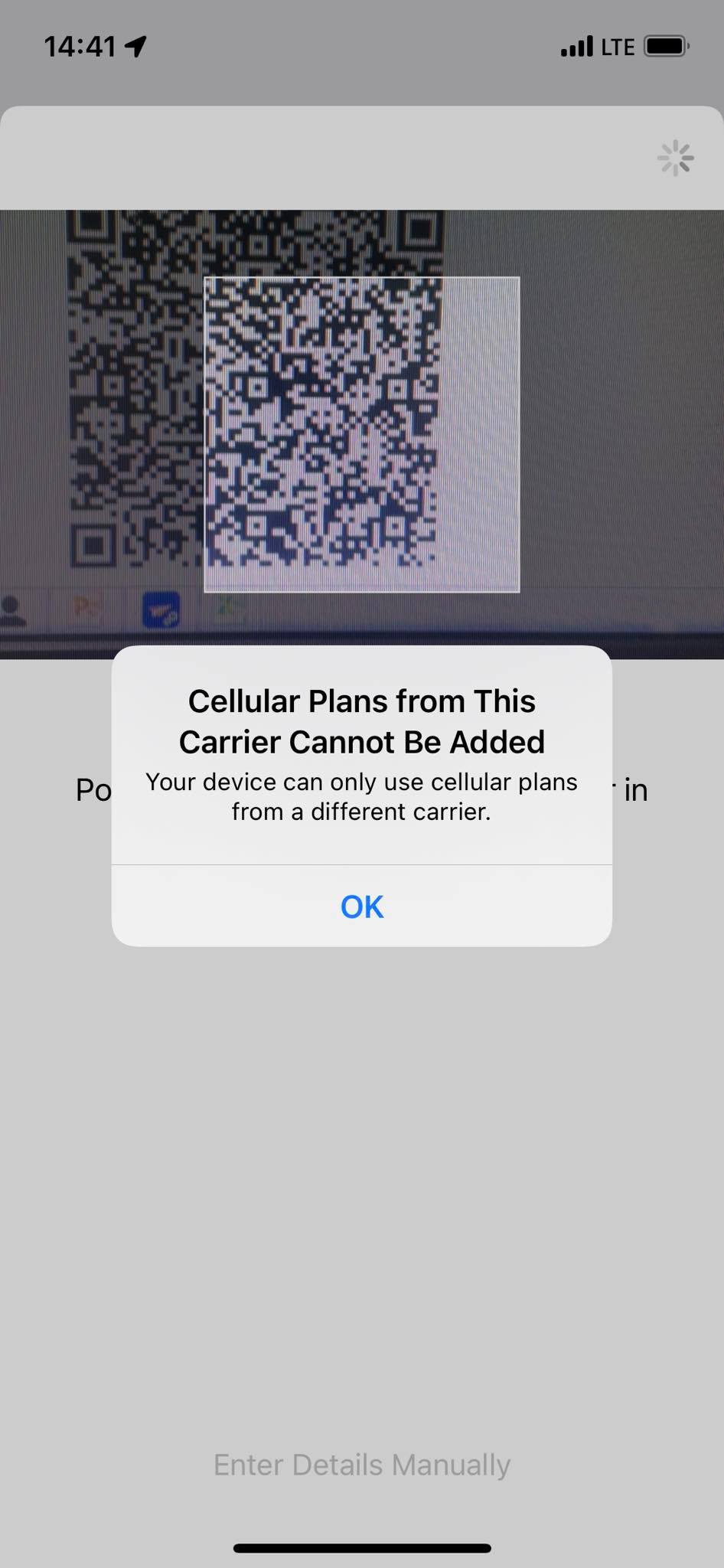 It appears that you have a carrier locked iPhone. Your iPhone is locked to the carrier that is currently showing active. You are attempting to add an eSIM from a different carrier. You can only add an eSIM second line from the existing current carrier.
