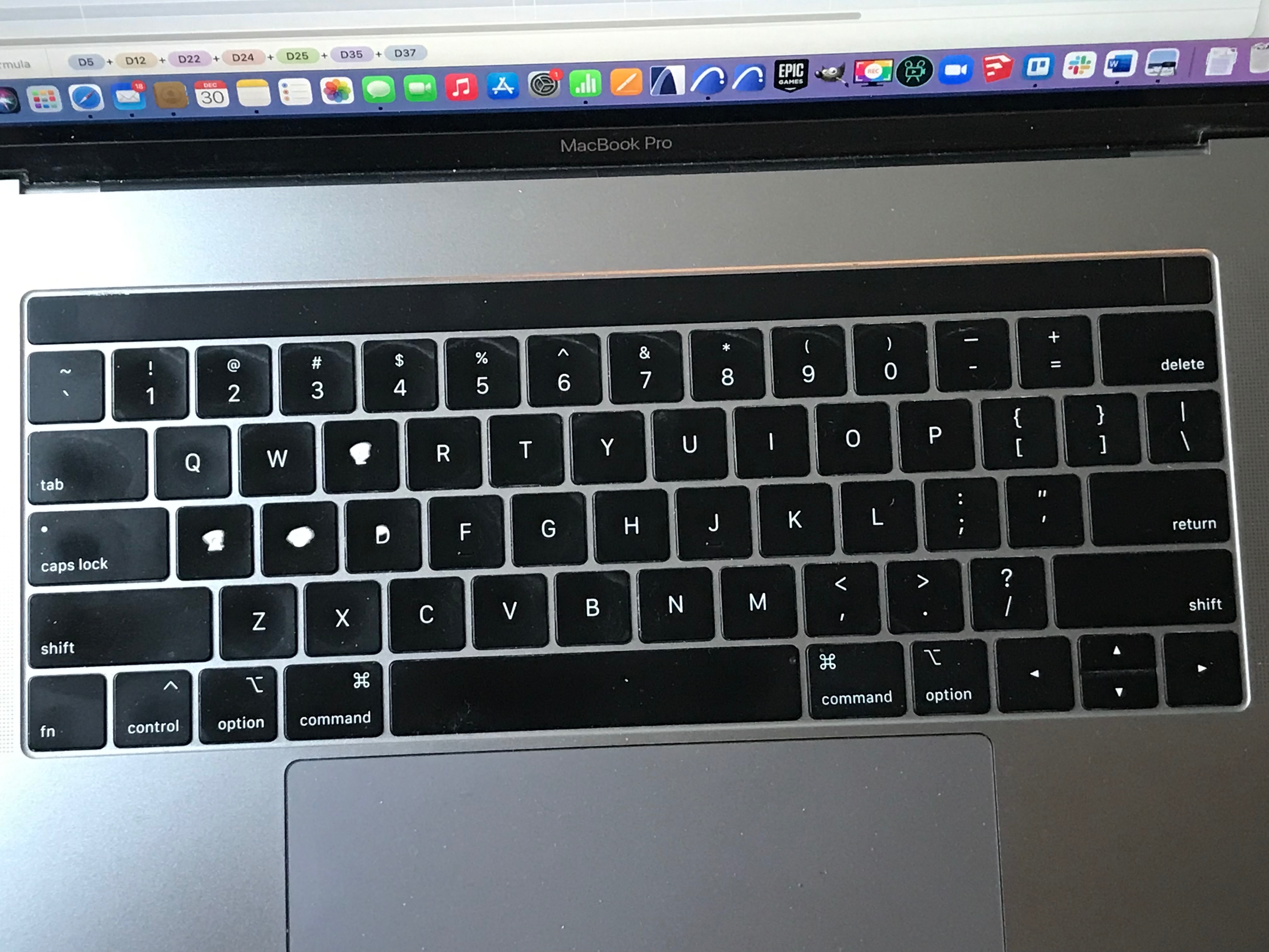MacBook Pro keyboard keys paint wearing off and fading (A, S, E and D)
