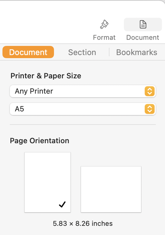 Click Document in the bar at the top of the Inspector pane.