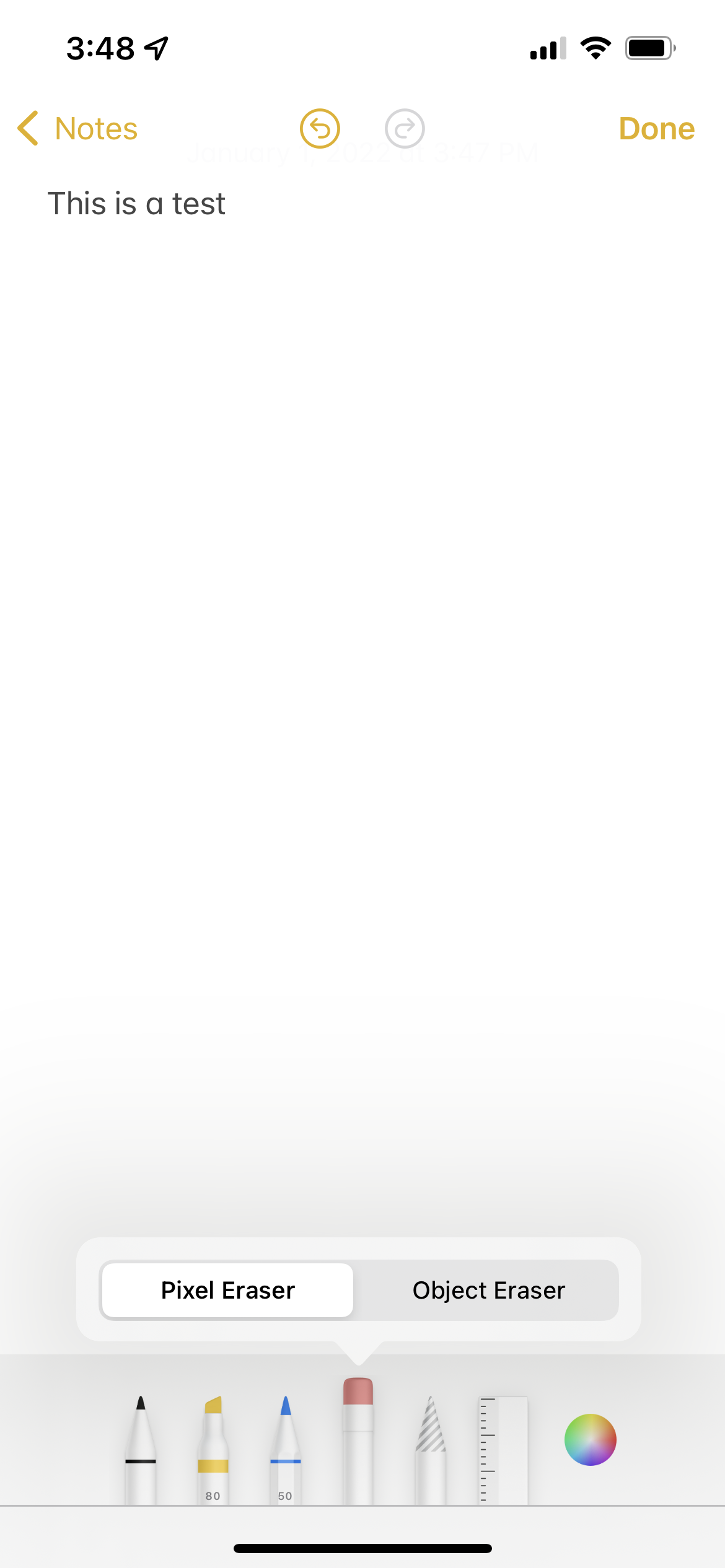 The eraser functionality seems to have disappeared from the toolbar on iPad notes. Even when I double tap the Apple Pencil it does not show up (and I have changed the iPad settings to set a double tap to change between the eraser and "current tool").