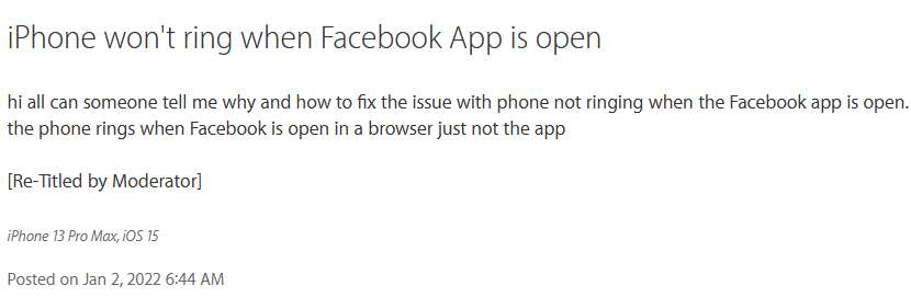 hi all can someone tell me why and how to fix the issue with phone not ringing when the Facebook app is open.
