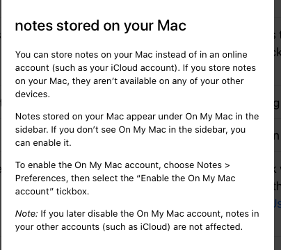 Notes created on my MacBook DO NOT share to my other devices.. phone, ipad, and Notes on icloud.com. Notes created on all other devices DO show up on my Macbook. So... any/all notes created on MacBook just sit there and only there. I've tried and tested everything -- iCloud settings are correct and Notes are set to go to iCloud vs. stay local on MacBook. Turning off/on iCloud did work to push out the Notes and reconcile but not all content within Notes was aligned (photos missing) and that fix didn't last -- as soon as I created a new Note was back to the same issue of not pushing from MacBook. I've talked to Apple support several times and they don't know / haven't gotten back to me with additional input