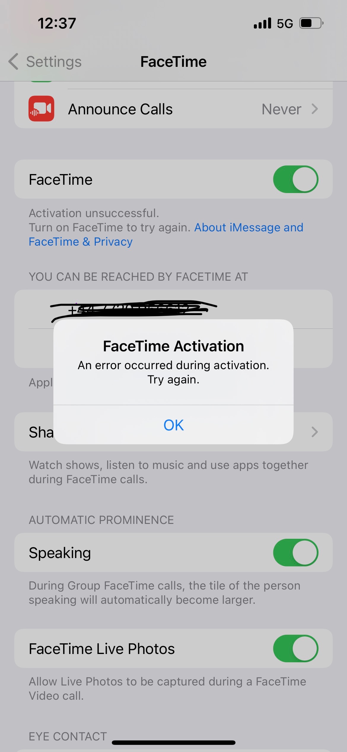 Recently changed provider, everything transferred ok but iMessage or FaceTime won’t allow phone number (only email). Tried all the troubleshooting I can find but still getting this message on both or it spins round and round when selecting the number. TIA