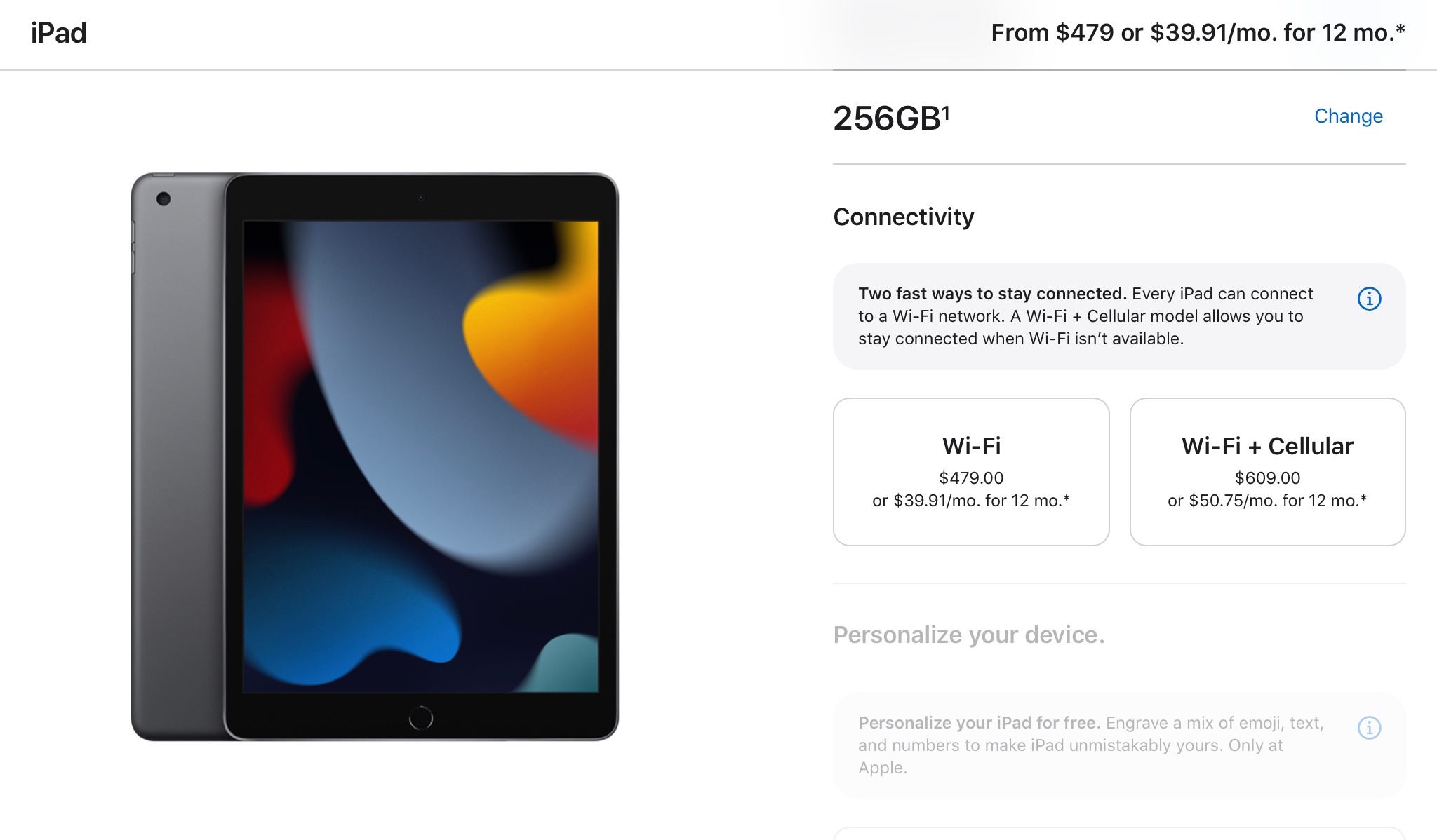 Hello, I was wondering how much is the iPad 9th 256gb, in the store in Emeryville, CA 94608 Thank you:)