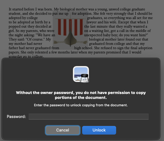 and in practice, when I select an image and attempt to copy it to the Clipboard with a ⌘C, the password prevention kicks in: