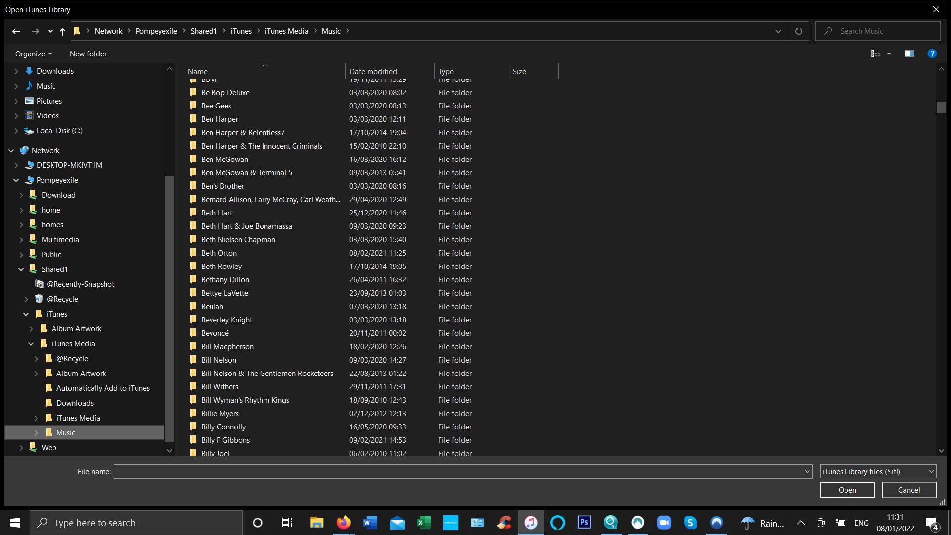 I have looked at methods for retrieving libraries which apparantly can go missing after updating iTunes but these all mention going into the iTunes folder on your PC and looking for previous libraries file. As I do not keep it on my PC but on my NAS when I look in that there are several library folders...