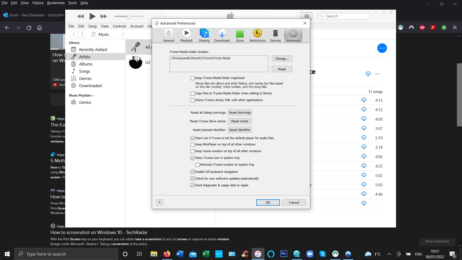 My iTunes and the library are kept on my QNAP Nas. I checked the path to my music library in preferences advanced (screen shot provided) and that hasn't changed and all my music is still showing on the NAS and I can even access it through my Sonos app.