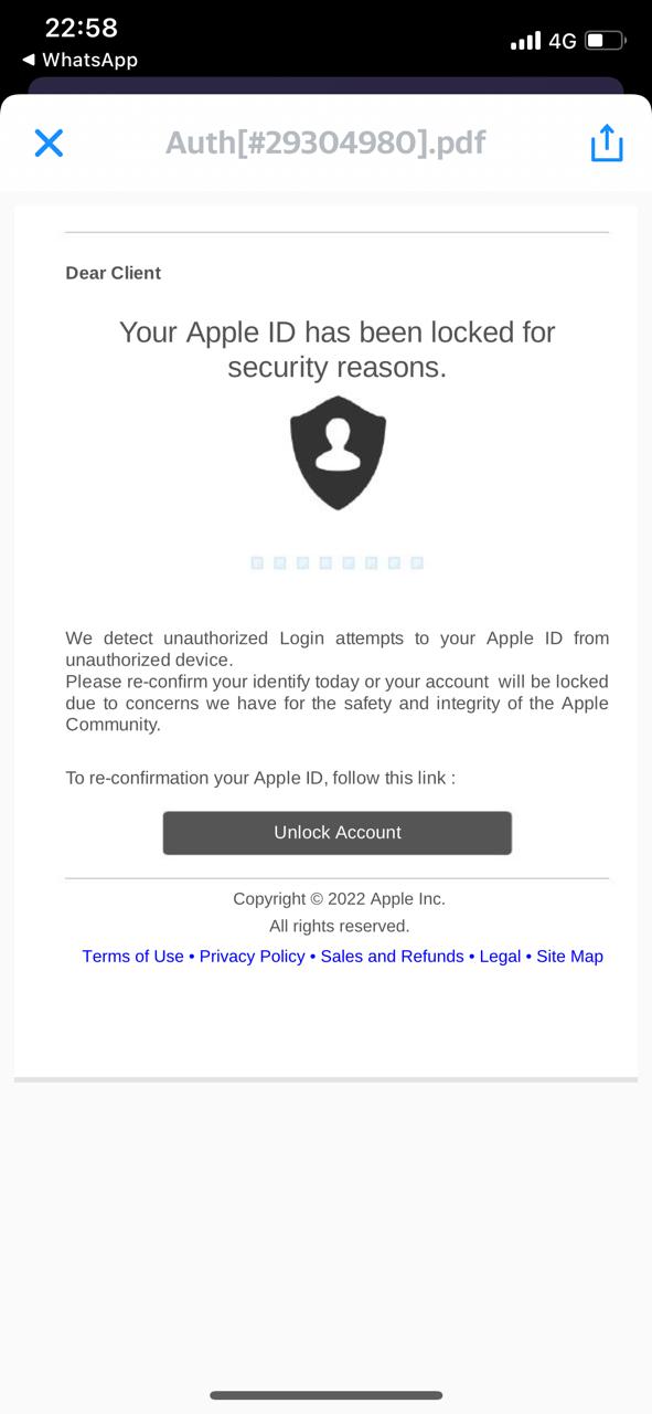 "If you receive a suspicious email or SMS text message that looks like it's supposed to be from Apple, please email it to reportphishing@apple.com."