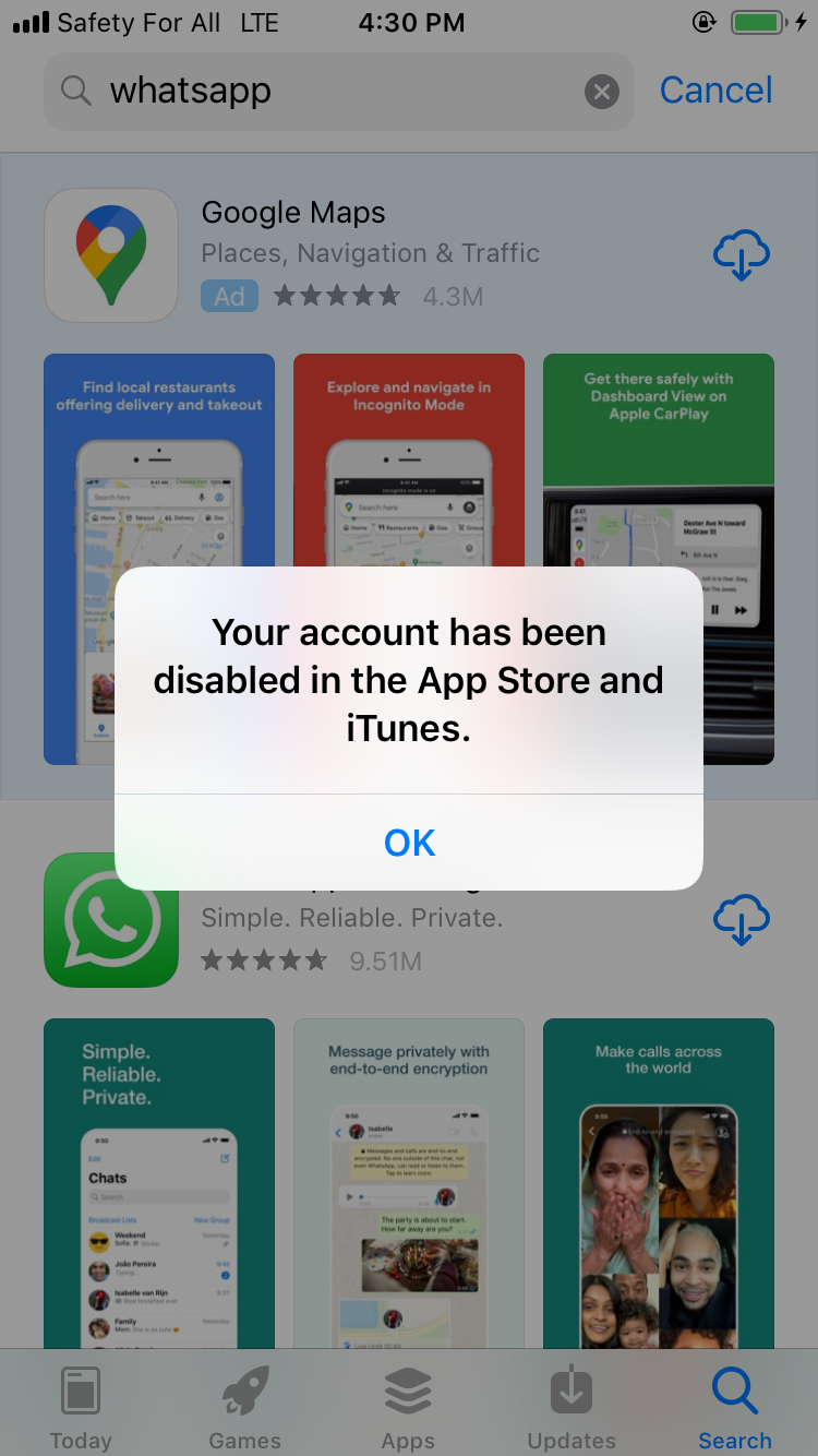 How can I fix my iPhone when it say your account has been disabled on App Store and iTunes