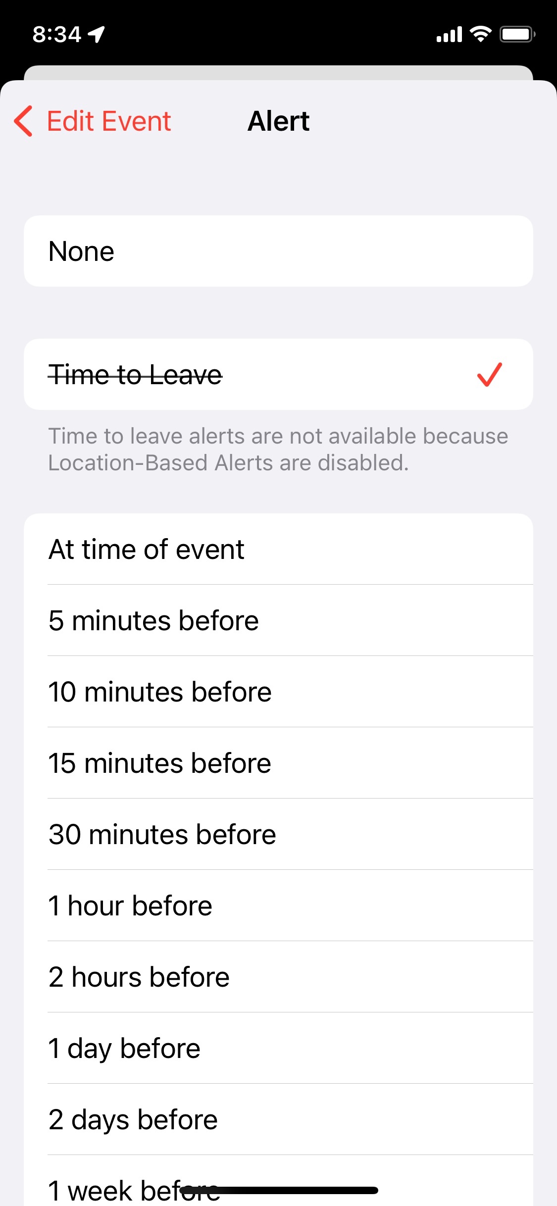 my “Time to leave” calendar alert is showing not available despite having location services enabled. The location map even appears in the appointment details. What do I need to do to enable this?