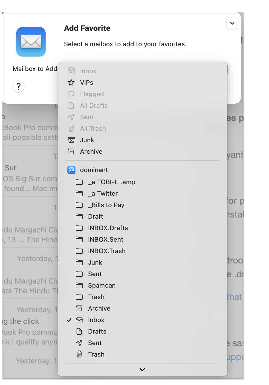(On top of that, other than my iCloud addy, those other addies only have a single Inbox and nothing more. How on earth does one deal with the sidebar?)