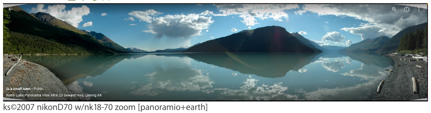 This was larger panorama of Kenai Lake, at Lawing Alaska; seven-part patchwork w/DSLR.