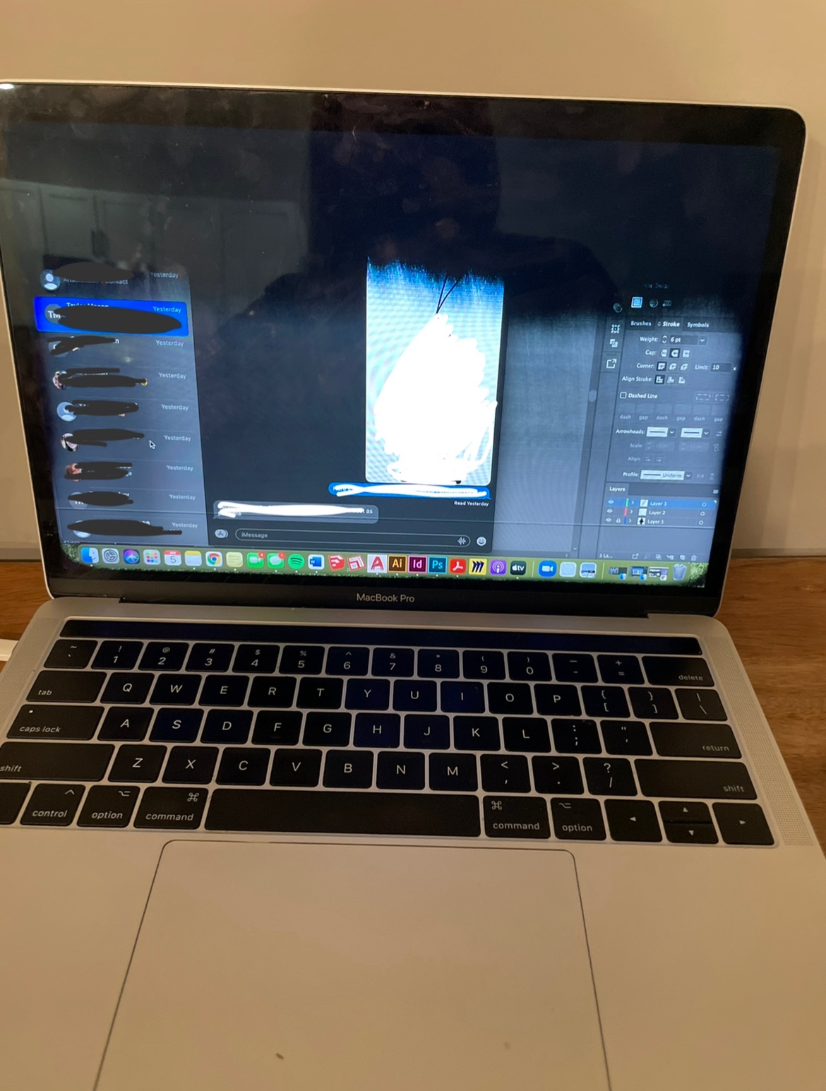 my 2017 MacBook Pro’s display did this when i turned it on one morning. The pixels slowly turned black until the whole screen blacked out. Touch Bar still shows the esc key. (I drew over personal imessages.)