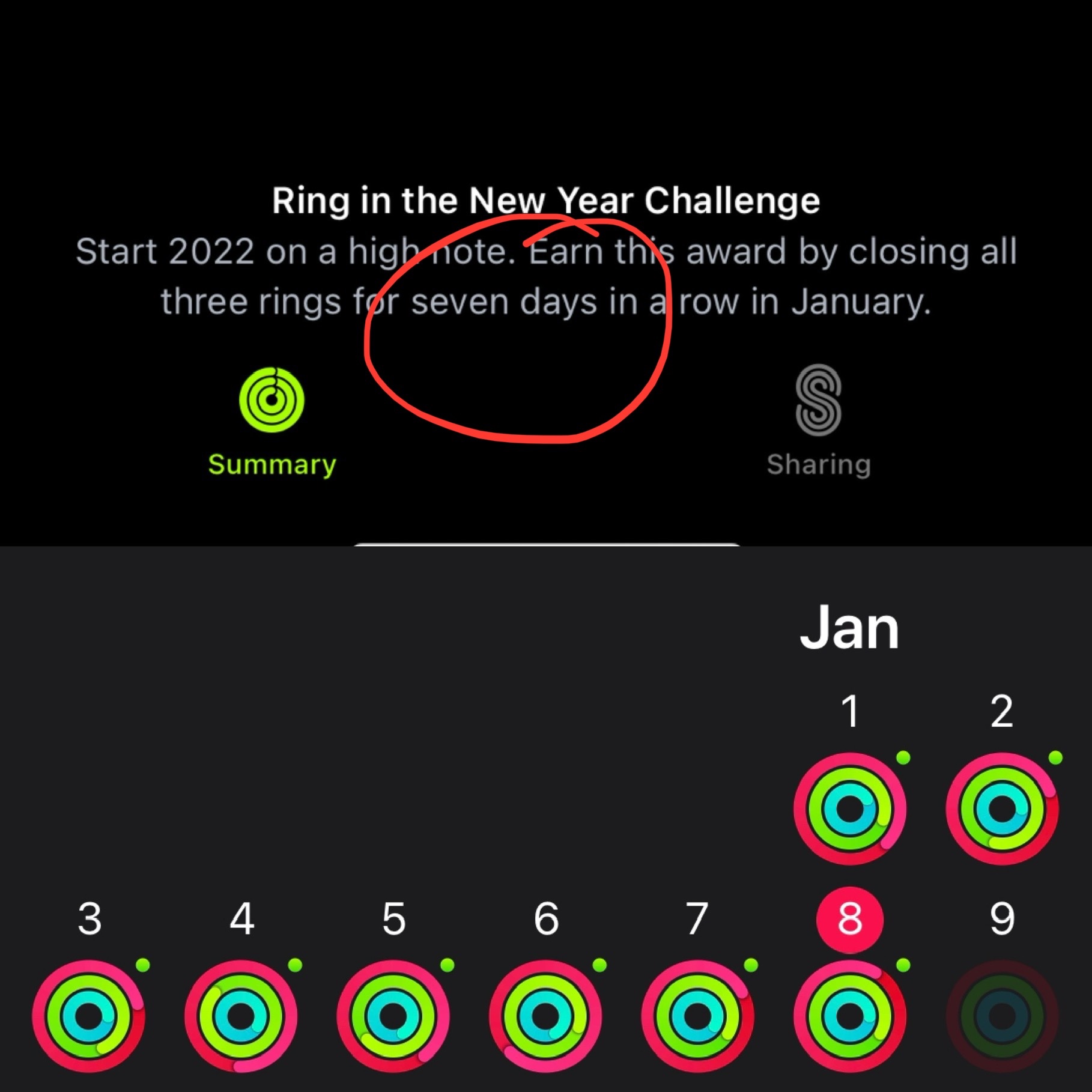 I closed all my rings for consecutively 8 days but still didn’t get this award… anyone faces same issue ? Or how can I resolve this ?