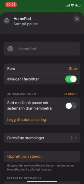 I have attached a some pictures showing what is going on frome the HomePod Mini menu in the Home app. I also try to show some of the settings. (I wish I could upload a video)