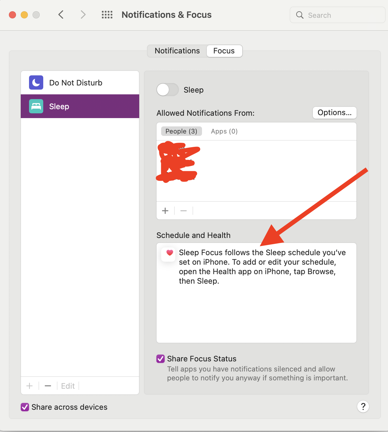 Settings in Mac OS: Take Sleep Focus schedule from the Health app on my phone.
