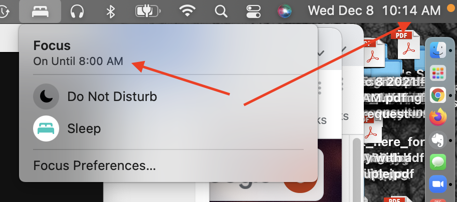 Examples of it being past 8am on a weekday, but MacOS thinking Sleep Focus should still be on: