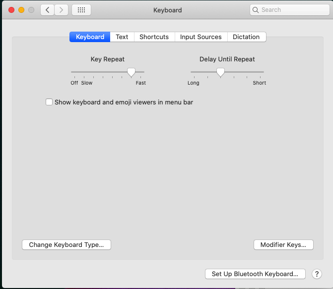 looked at systrem preferences, keyboard then keyboard tab. I have Key repeat / Delay Until Repeat & a checkbox that says Show keyboard and emoji in menu bar. There is no option to uncheck 'Use F1, F2 etc' I am Catalina10.15.7 (i cannot go any higher)