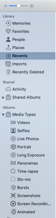 Are you asking about the items "Library" and "Media Types" in the sidebar of Photos?