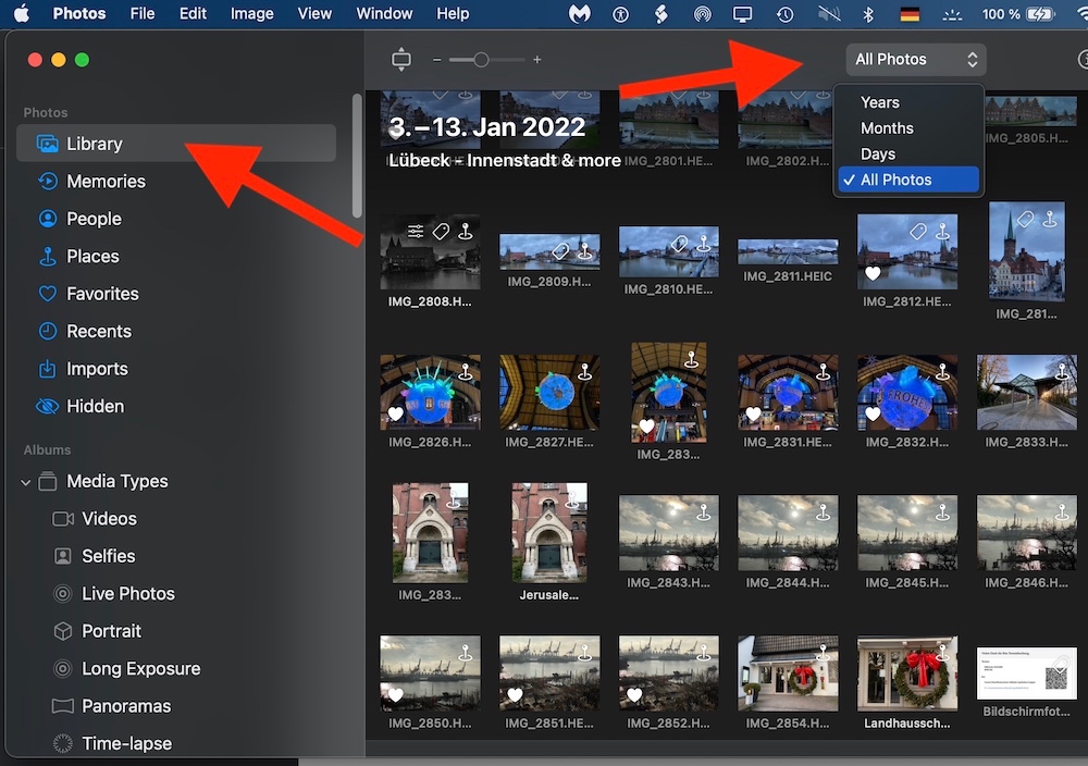 If you click "Library" you can access "All Photos", "Days", "Months", "Years" from the menu in the Toolbar.