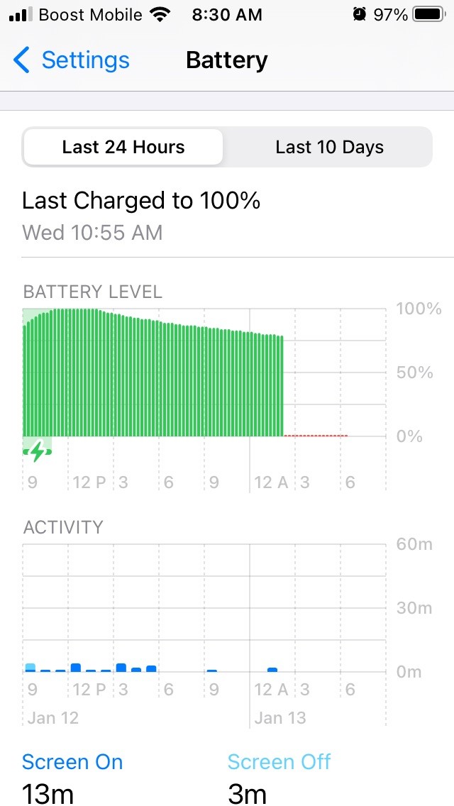 For the past days, my iPhone SE (2016) battery has suddenly dropped to 1% in the middle of the night, around 2am. Here is the Settings => Battery report this morning: