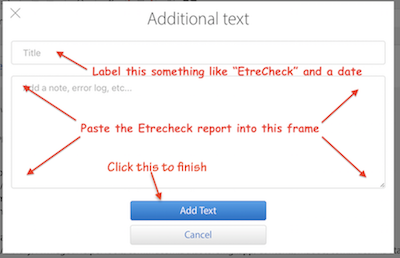 Paste the report into the resulting “Additional Text” window:
