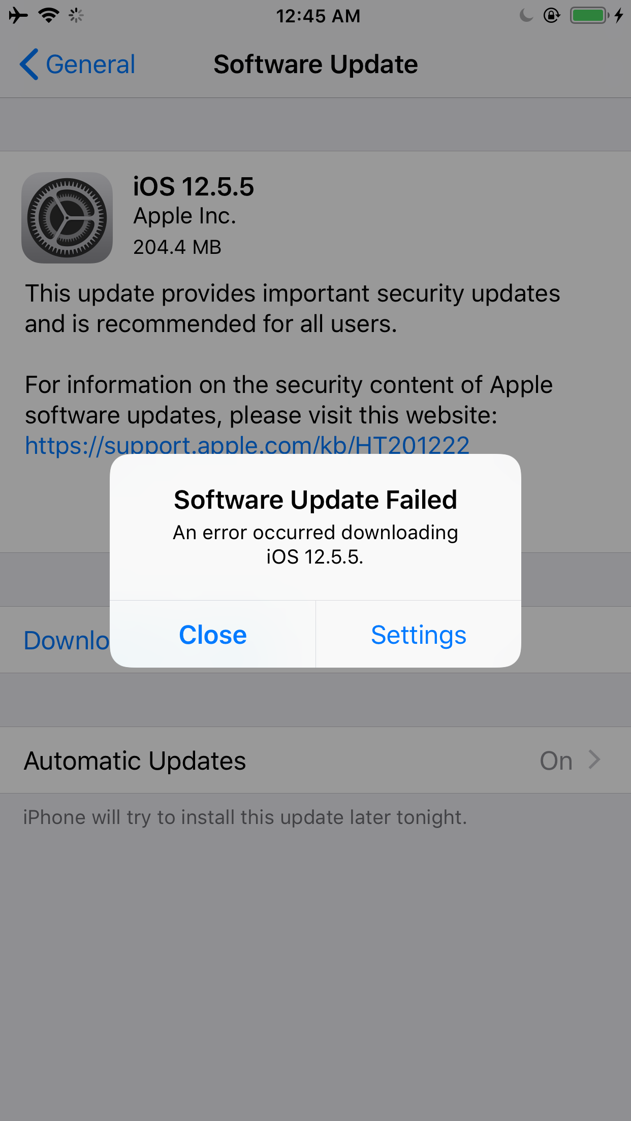 what reason cause my iPhone 6plus refused to update los 12,5,5