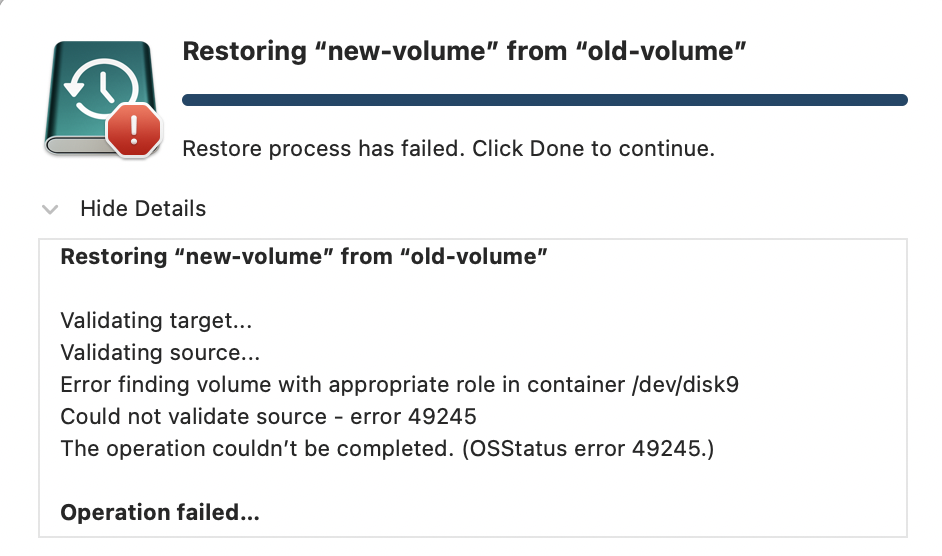 Move Time Machine backups between external APFS volumes