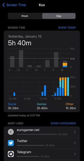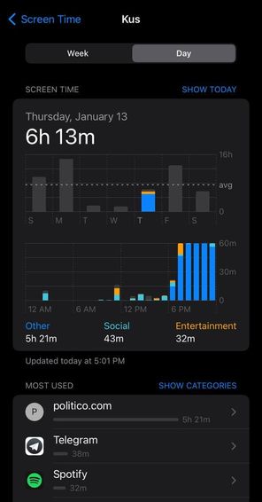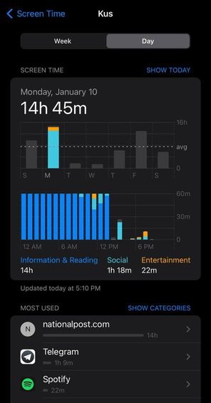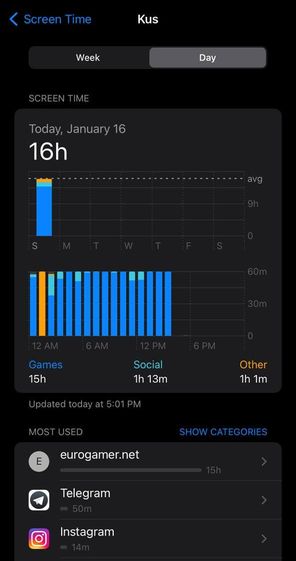 3) Check Screen Time next morning, and it has counted 16 hours of you reading one website.