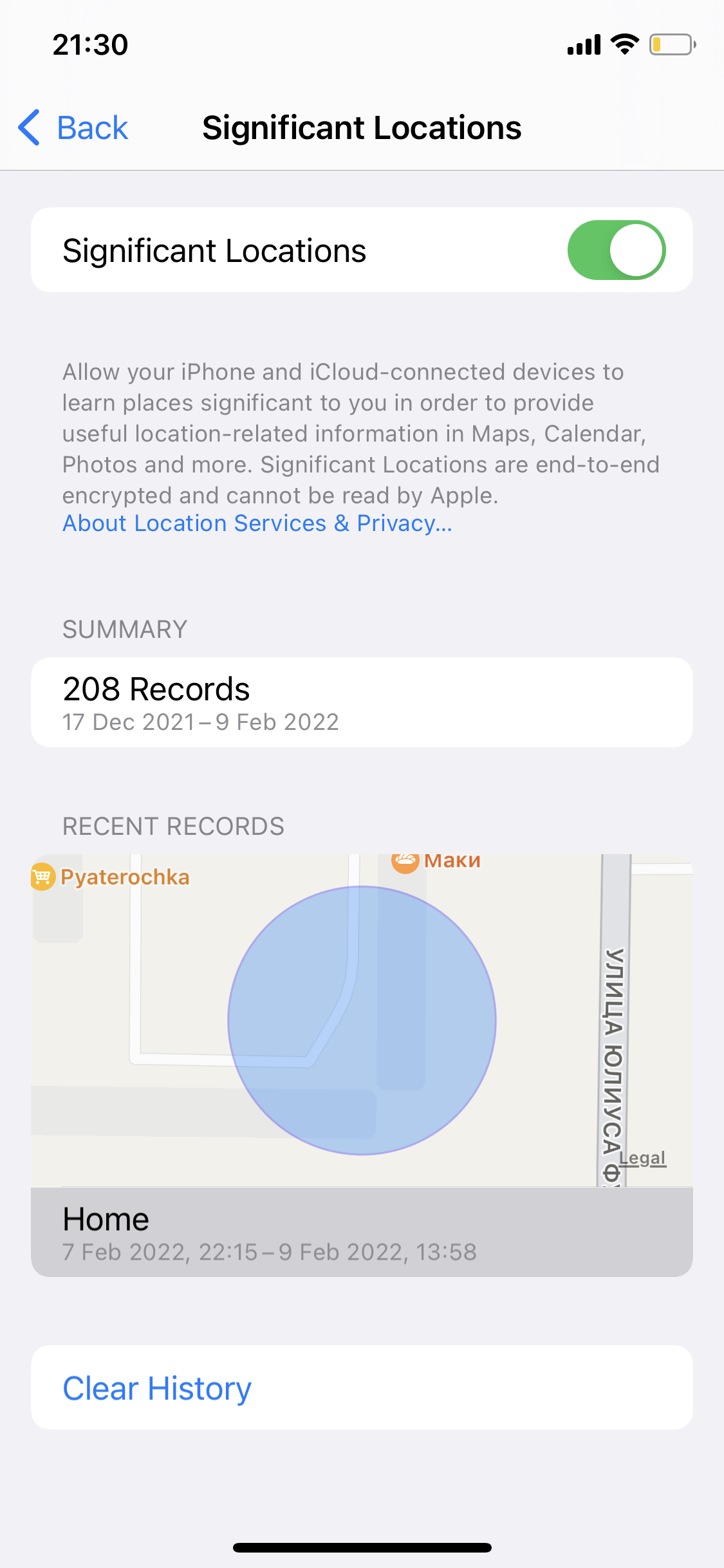 Как просмотреть сводку в «важных геопозициях»