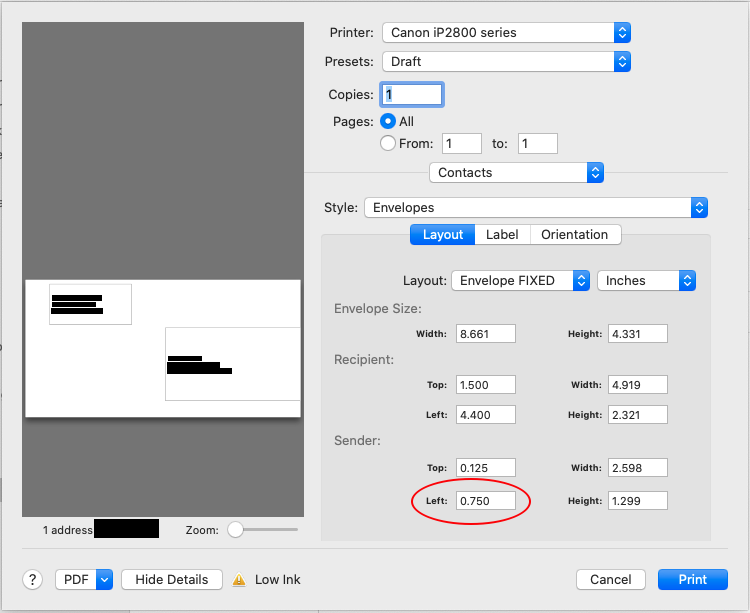 Contacts: Return address cut off on envelope: The Sequel