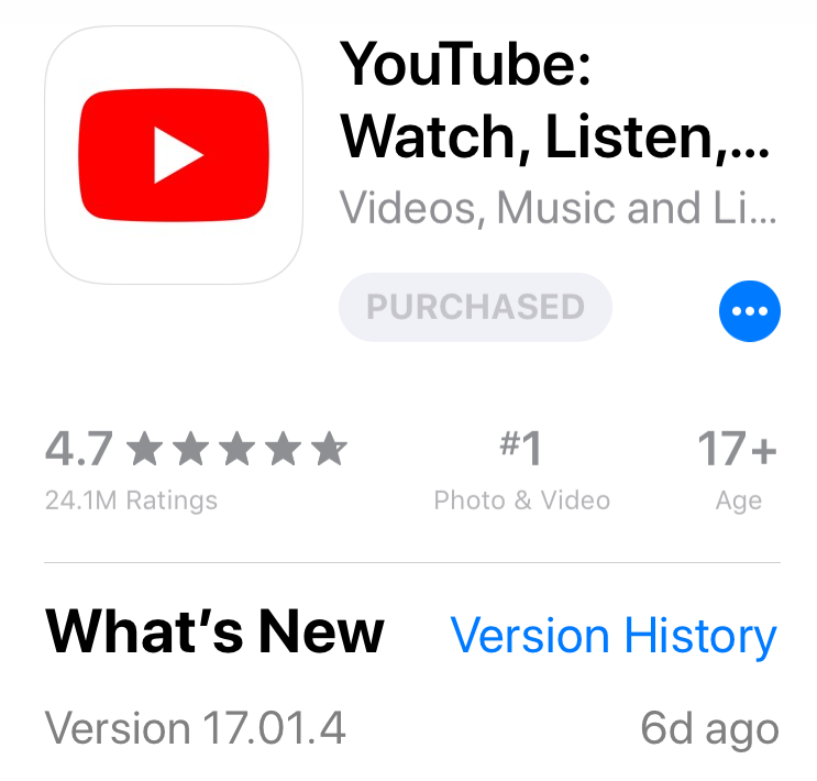 I checked All Purchases (My Purchases and Family Purchases) and it looks as if YouTube has never even been downloaded.