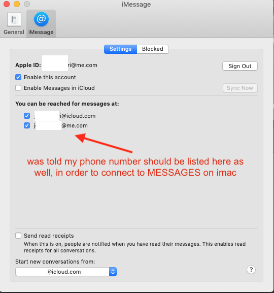 PROBLEM IS my phone number IS NOT listed, the list is only my apple email and iCloud email. How can I add my iPhone 13pro to the list in order to receive texts when i receive a message on iMessage on my iMac.