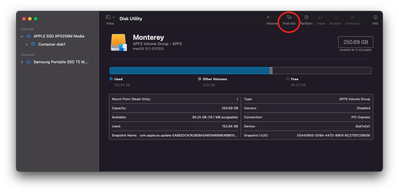 Scenario, like many others, I have an APFS formatted disk large SSD (Samsung 870 QVO, 8TB).