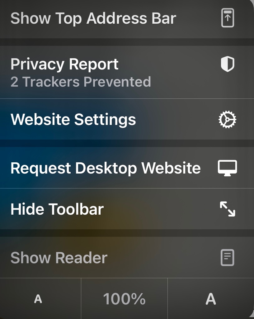 From the address bar, tap the Reader icon for a shortcut menu, then select Show Top Address Bar. 