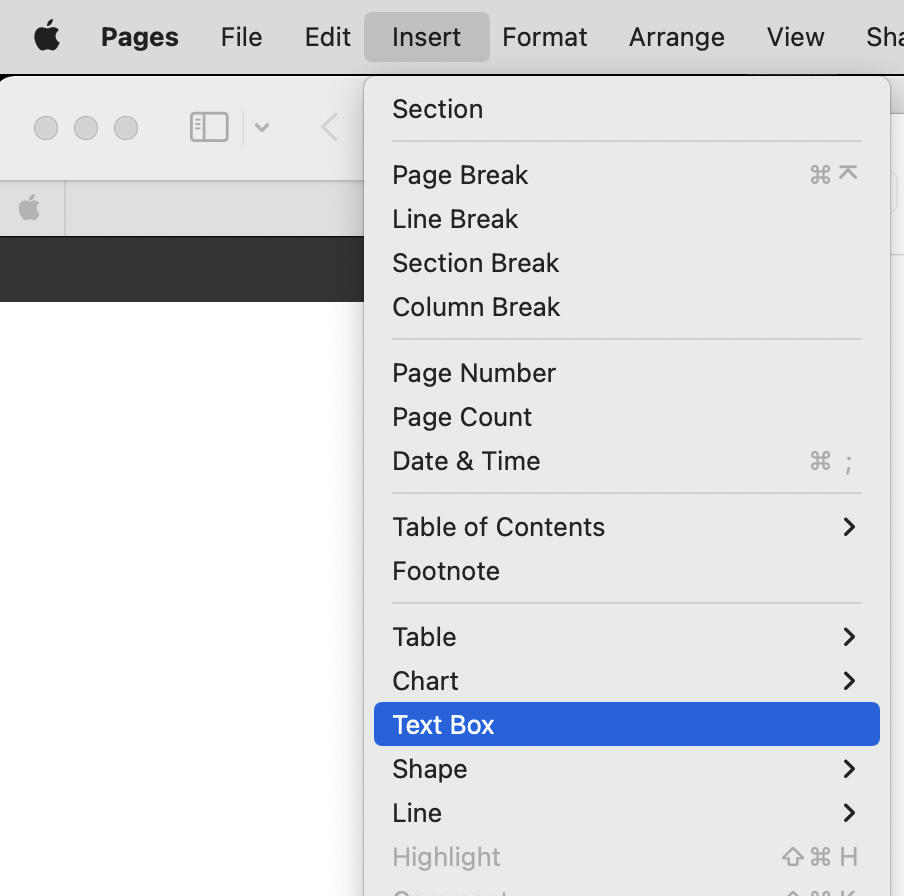Click the symbol on the Pages toolbar that has the word Text beneath it. Text boxes are always open, and you click on the placeholder text and enter your content.