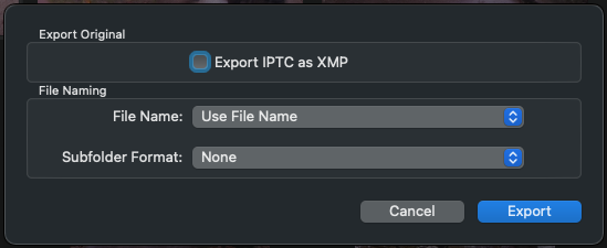 Thanks but no i can choose export iptc as XMP, file name and sub folder format, no destination