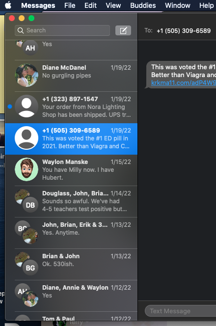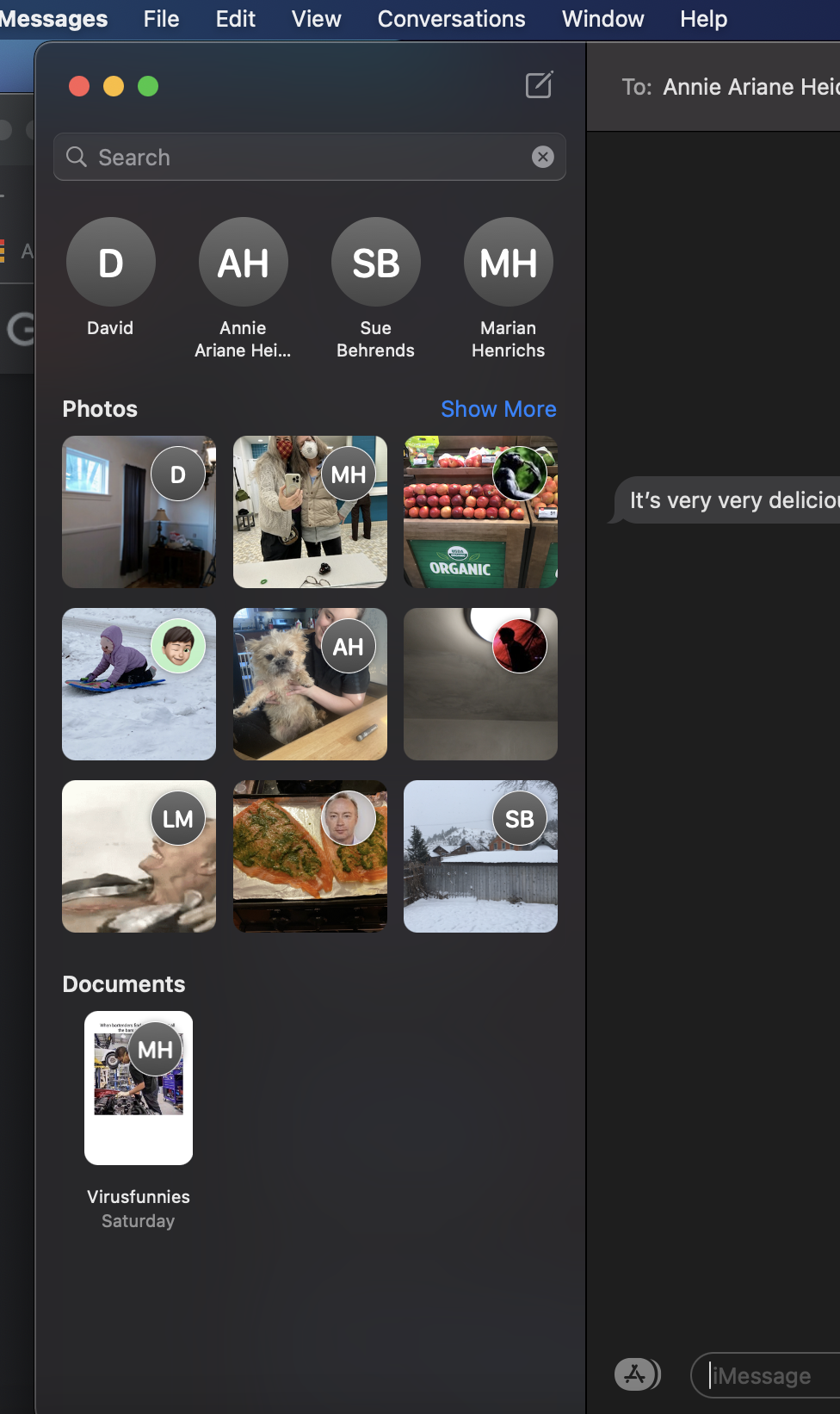 My wife wants her Messages on her Macbook to look like her iPhone. The side panel switched to icons: