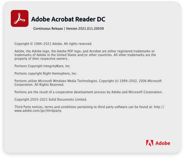 Adobe Reader is free to download from Adobe. You can download the latest version before or after moving to Monterey. The latest version is 21.011.20039.