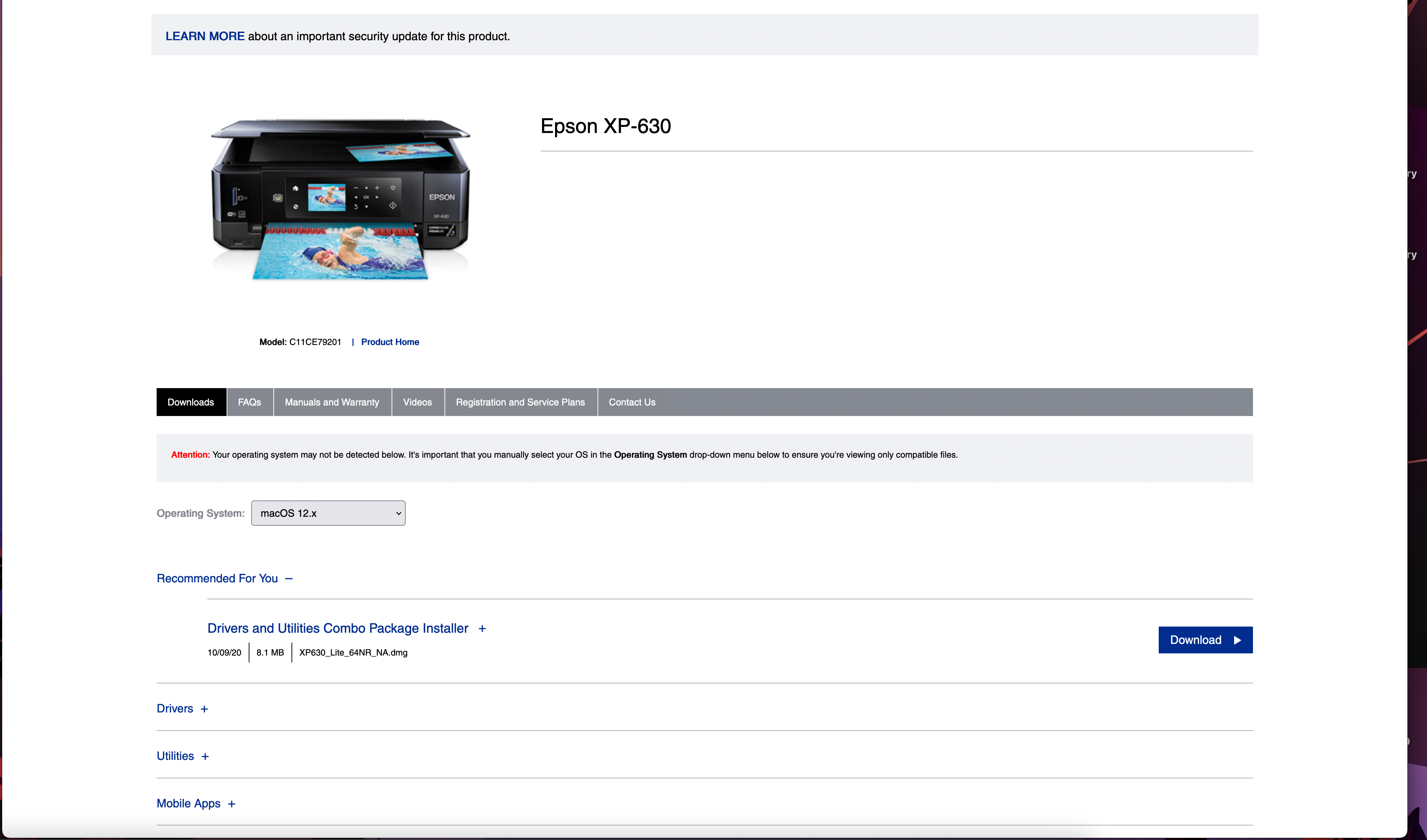 Go to the Epson site: https://epson.com/Support/Printers/All-In-Ones/XP-Series/Epson-XP-630/s/SPT_C11CE79201?review-filter=macOS+12.x