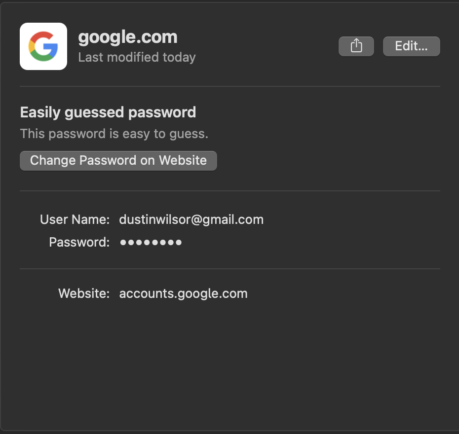 When I go to a website that I've used before, sometimes I have trouble with the password, which I normally assume is stored in iCloud Keychain. But I get the error message: "Wrong UserName or Password." So I click on "Forgot Password" to correct the issue, and ultimately I'm given the choice of selecting a new PW, or using a "Strong Password," created by Safari. I choose "Strong Password," and I think the website then accepts the new password. BUT, the new password ISN'T stored throughout the Keychain, in the Cloud, nor in my other devices, nor even in the Keychain on the current machine. I do NOT get a "Would you like to save this password in the Keychain" query, so if I just continue from there, the new "Strong" password is registered only by the website, and not known to me or my computer or iPhone.