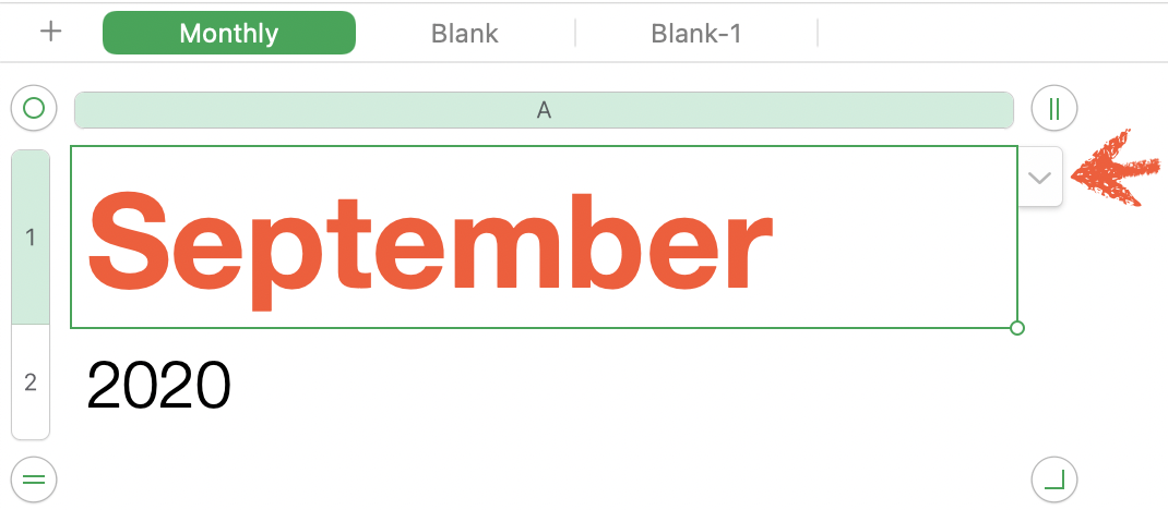Click on the Month name to select that cell, then use the pop-up menu control on the right of that cell to choose January.