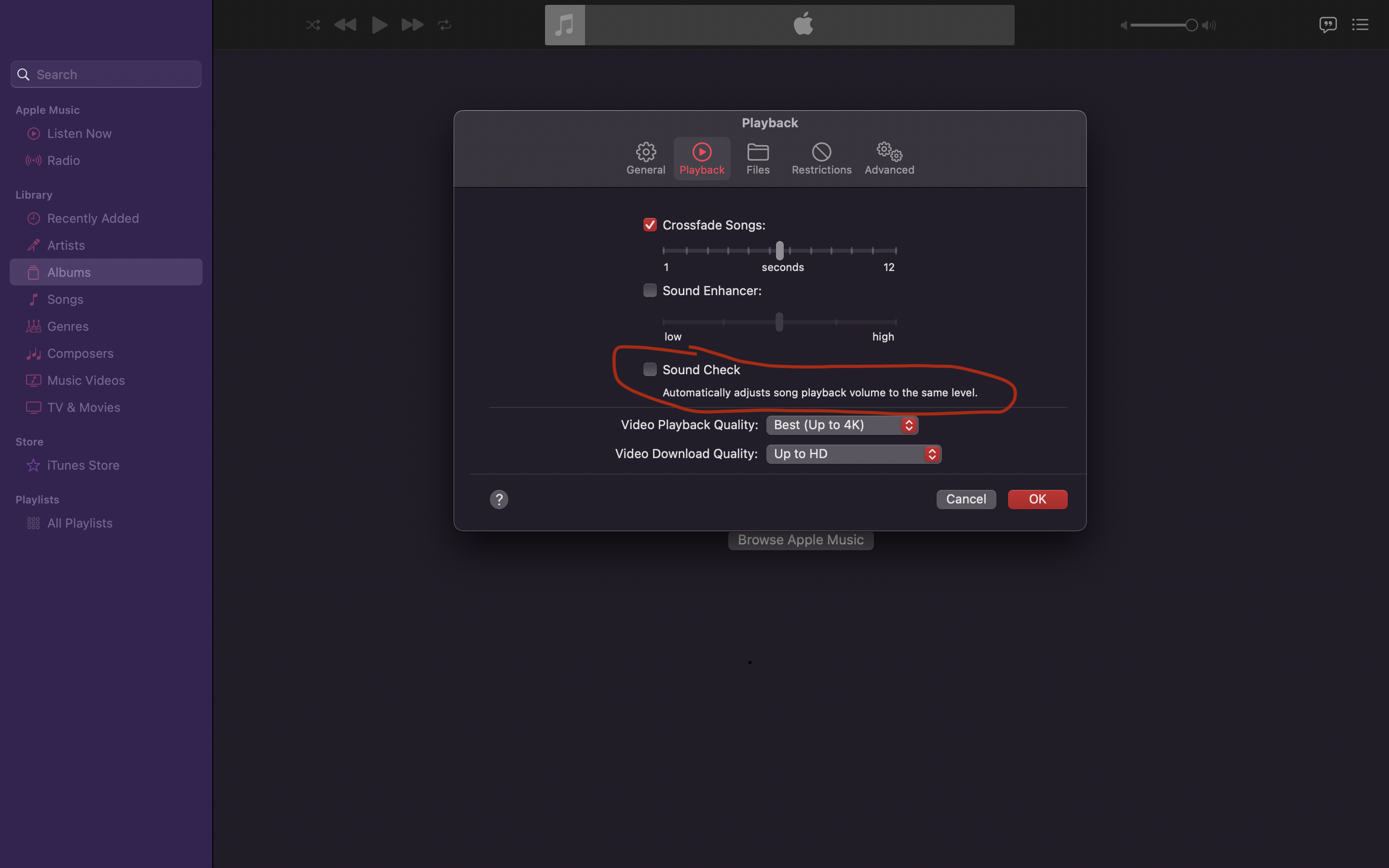 For example, if I preview an audio file on my computer (by navigating to the file and clicking the play button), the volume will be quite a bit louder as opposed to when I play the song in the Music app.
