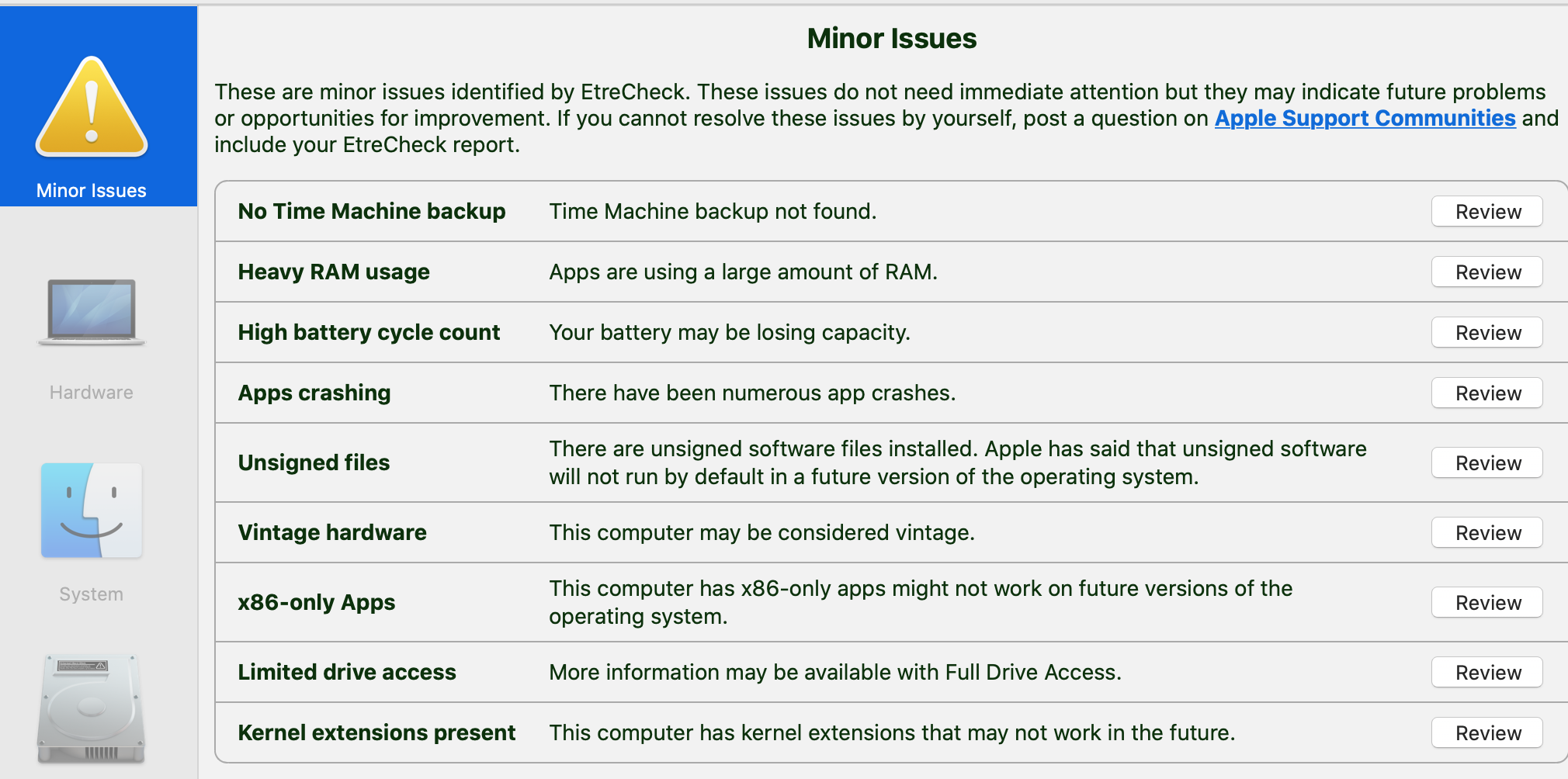 I've run a Mac cleaning program, and it only shows minor issues: