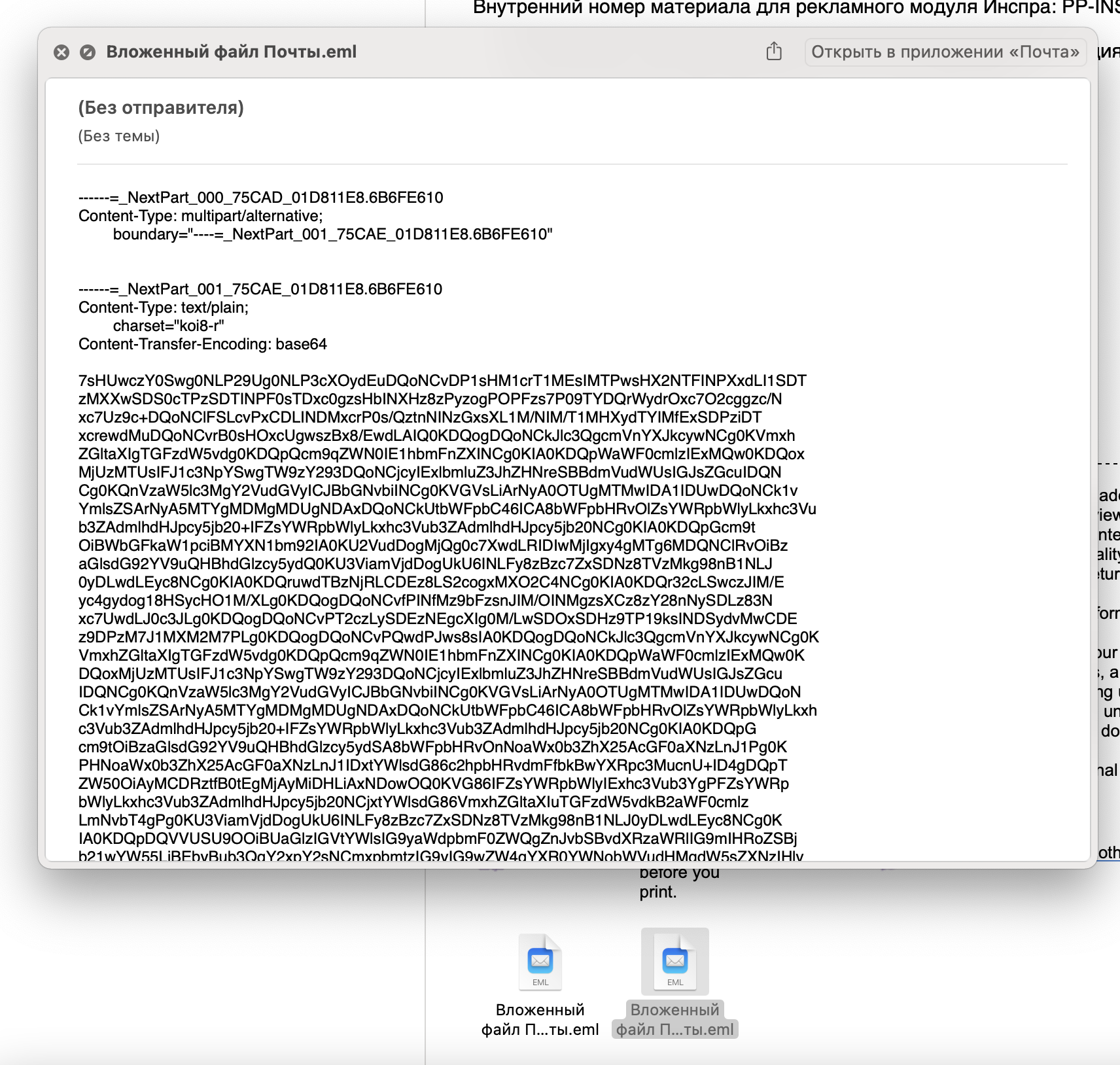 As the title says I can't see what is inside attached message. When I open there only unreadable symbols. However, I can easily open it with a browser based Mail agent.