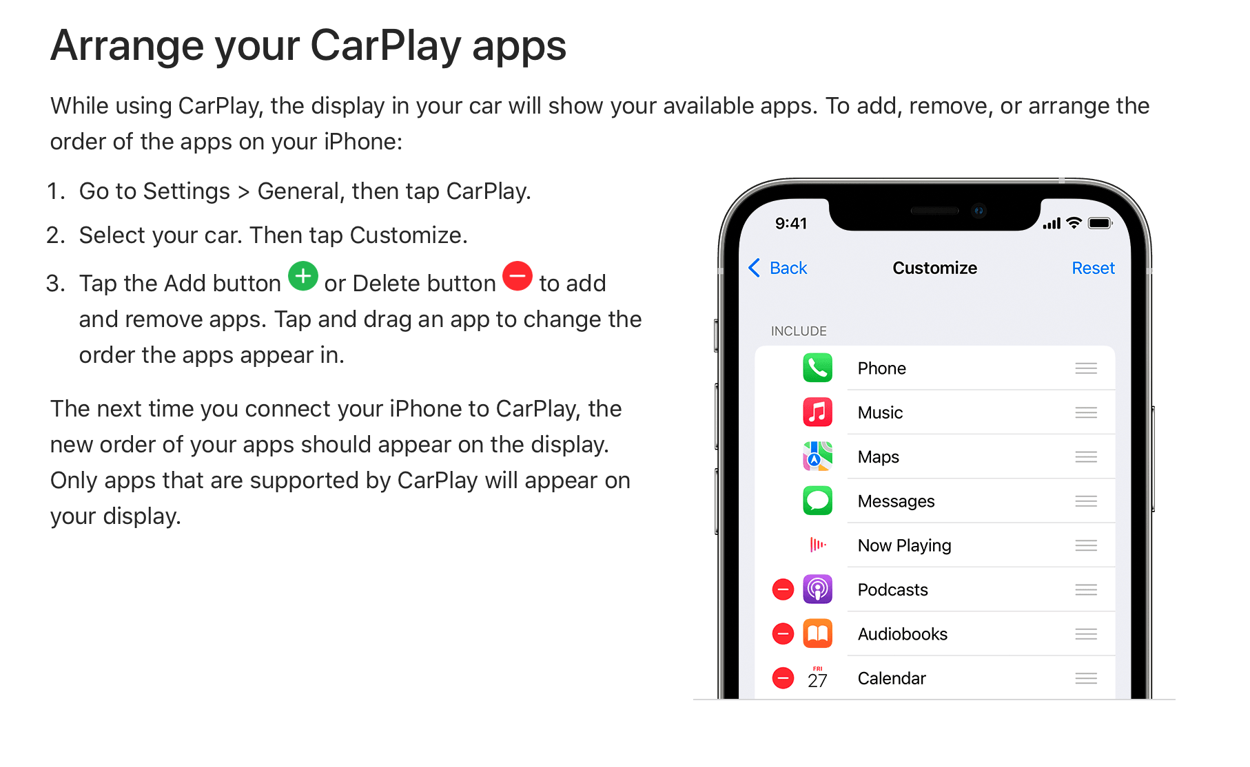 copied from: How to connect your iPhone, iPad, or iPod touch to your car - Apple Support