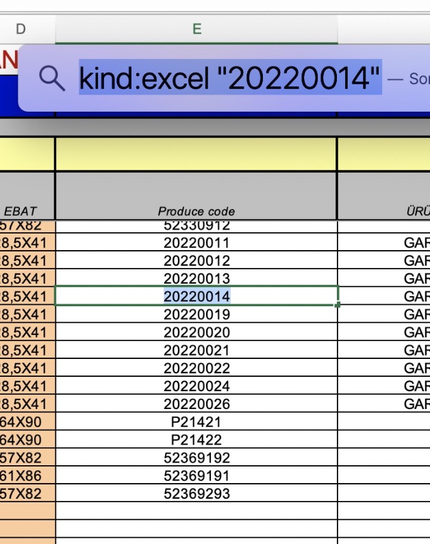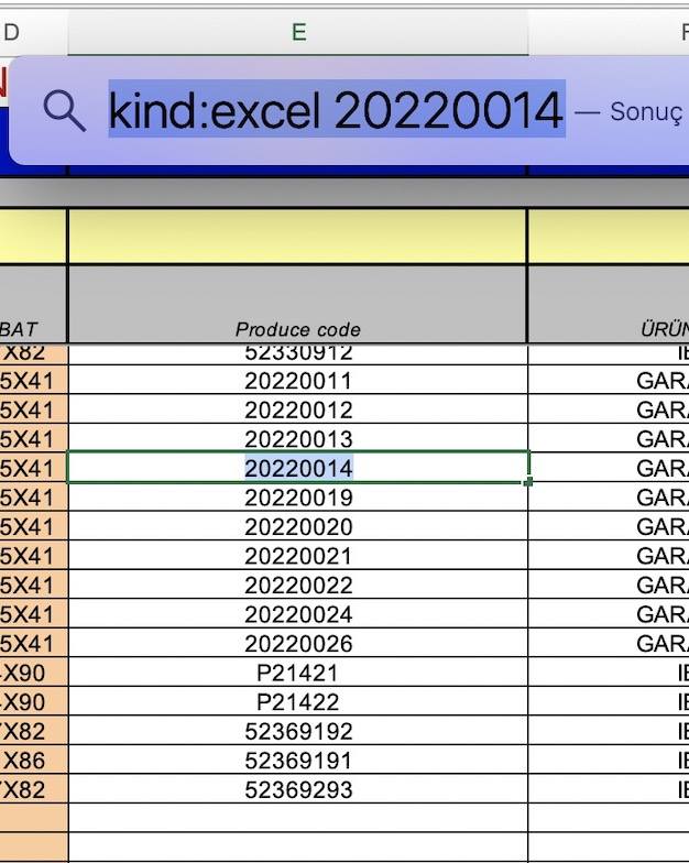 When I do a product code search with Spotlight, I want it to search within this excel file. But it doesn't!