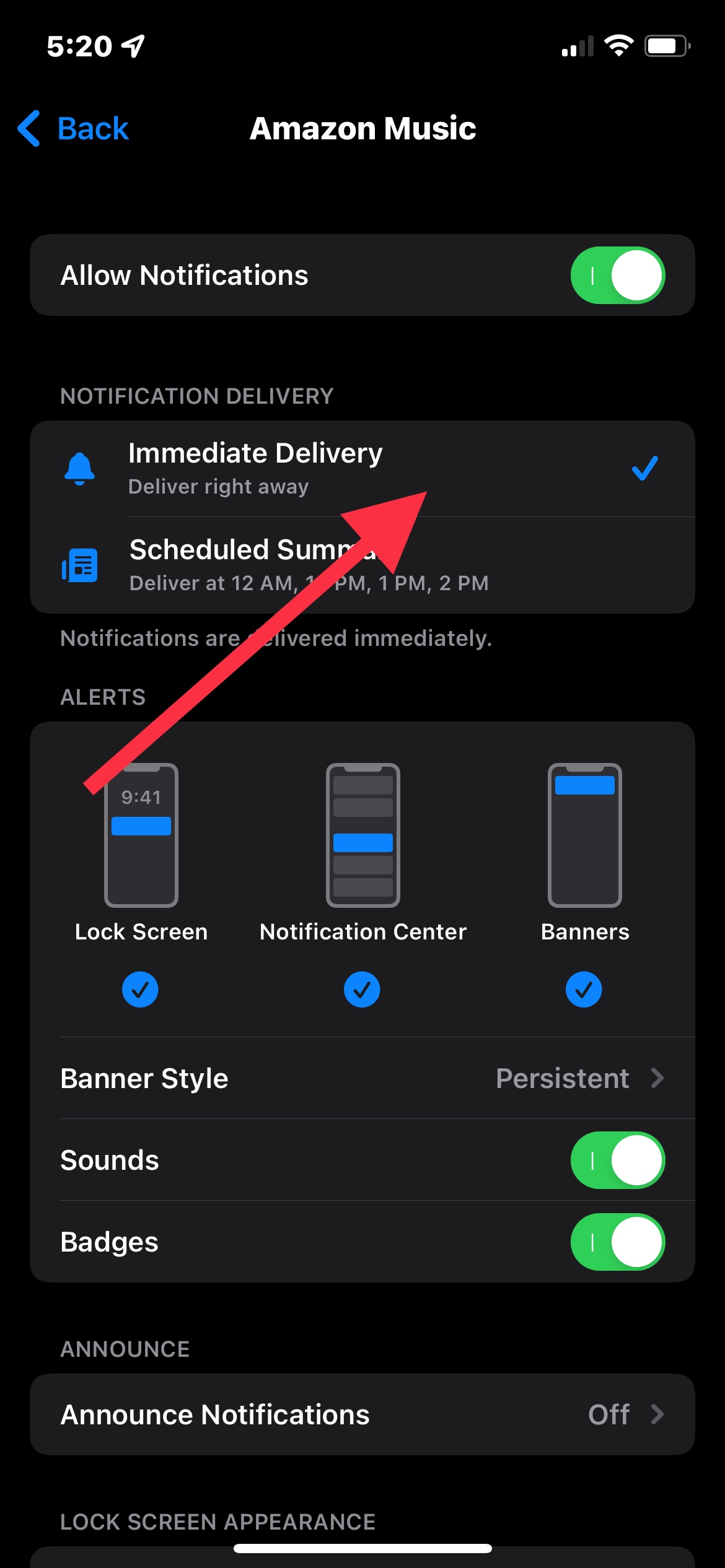 First off all delete all focus settings you can create it later , in settings.notifications/turn in scheduled summary just leave it on, go back then in all your apps one by one turn off/on allow notifications toggle then you will see a new option under allow notifications so select it and do it in all your sops make it like this 👇immediate delivery
