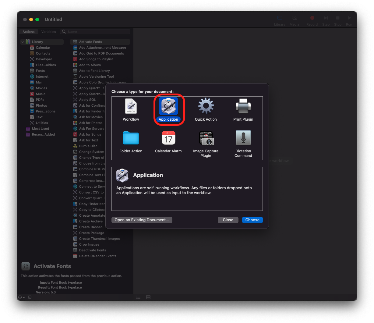 I created an app that uses the action "Run Shell Script" under Utilities.