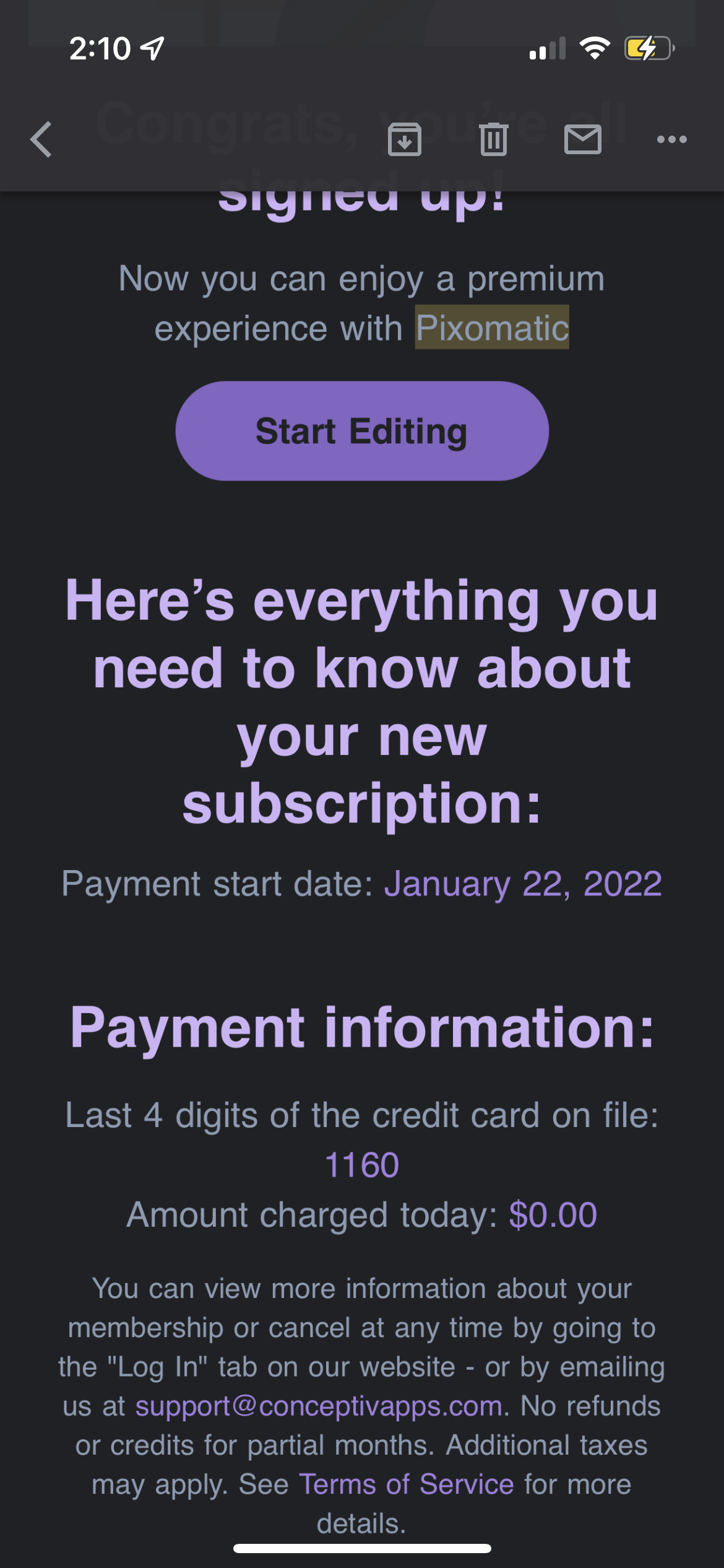 Hello all, I am a victim of fraudulent activities perpetrated by Pixomatic in the app store. They make you subscribe to the app trial version and at the same time block you from canceling your subscription.
